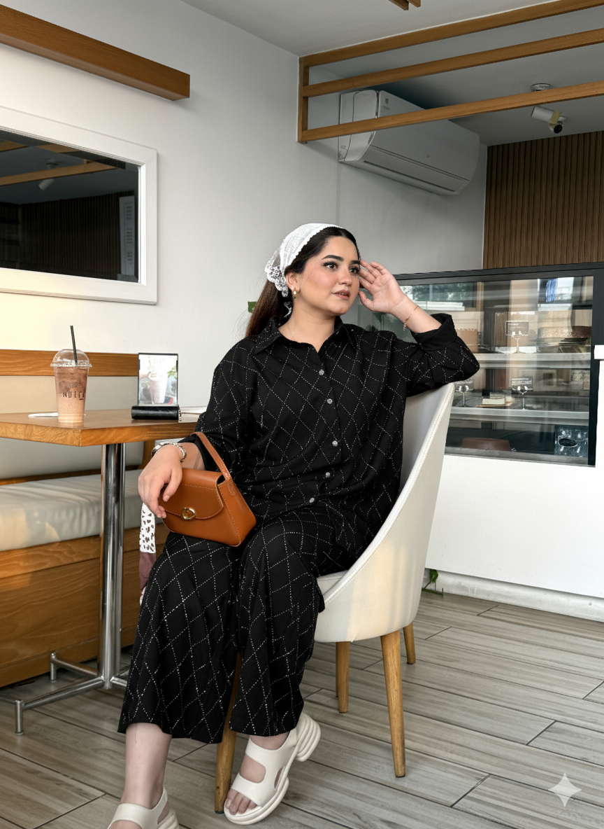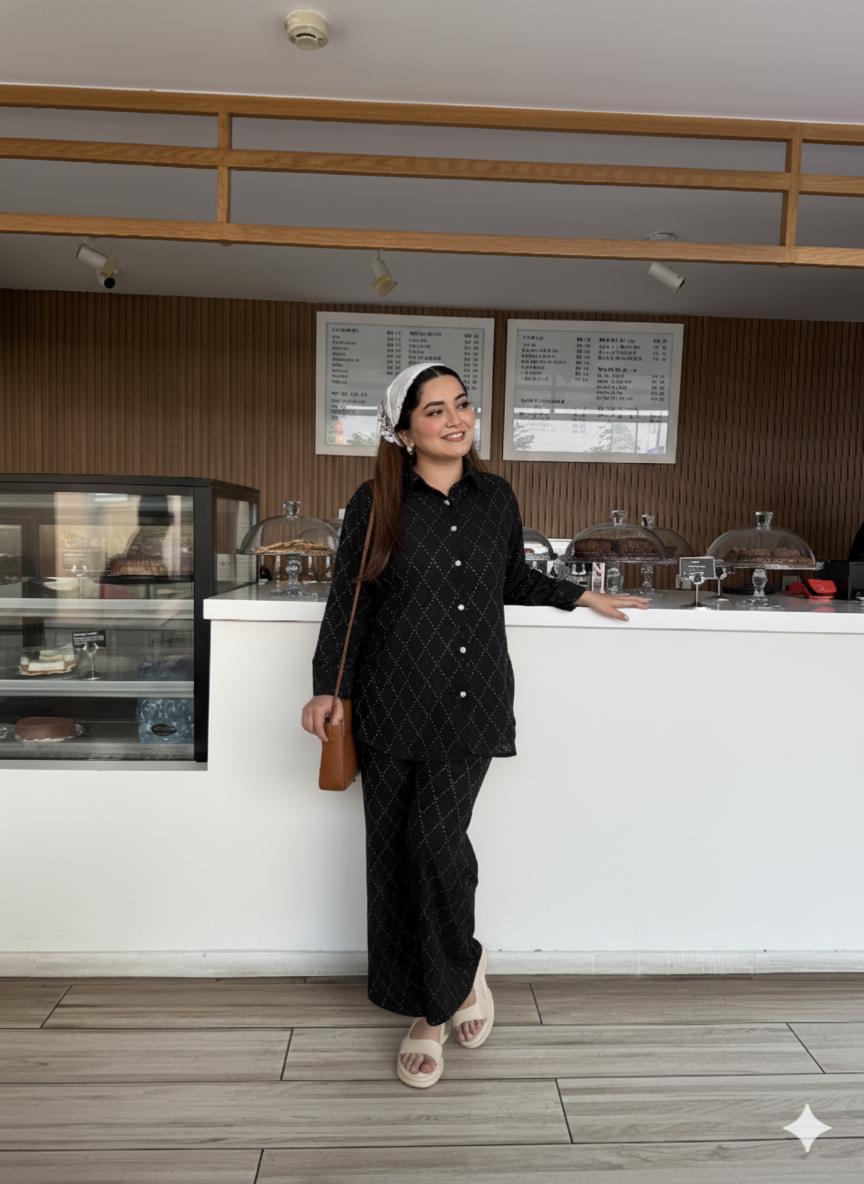 Blackish Embellished Co-ord Set with Sequin Detailing